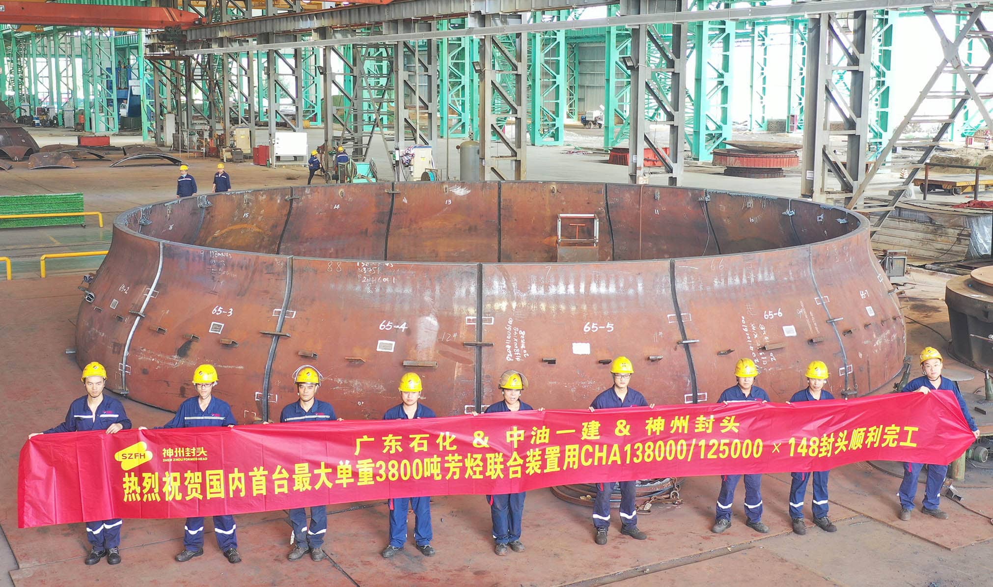 從最初500T壓機,靠一錘一錘砸出封頭的小作坊,到現在直徑7500mm,厚度400mm以下整體一次成型,